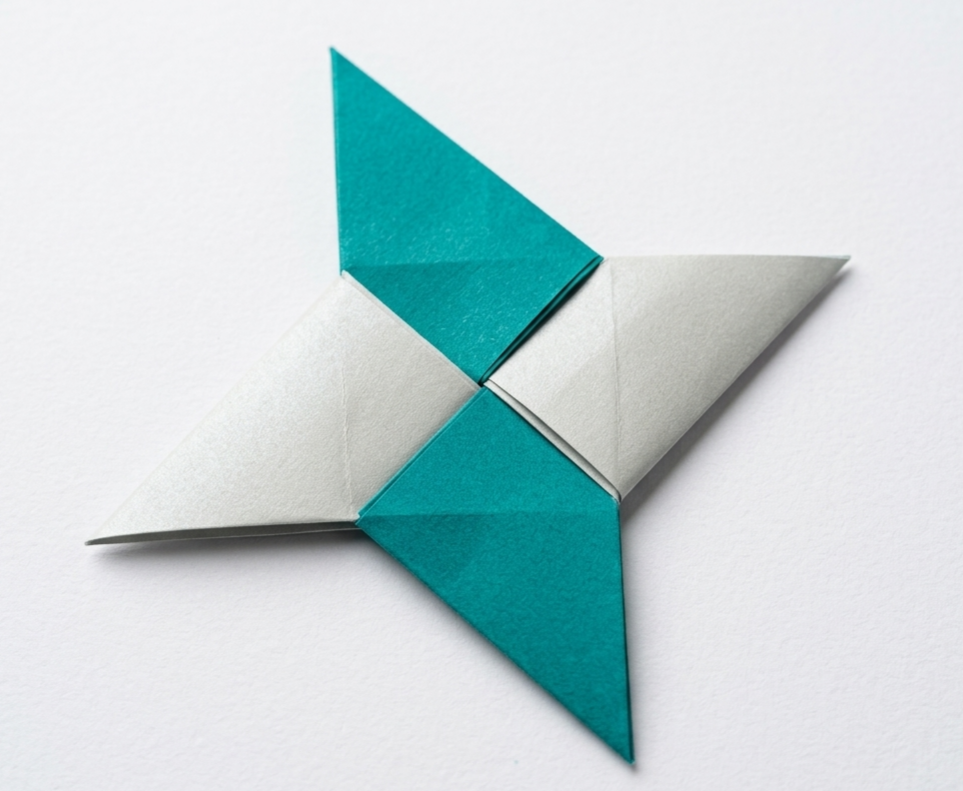 This classic origami ninja star (shuriken) is made from two interlocking paper units, creating a sharp and perfectly symmetrical shape.
